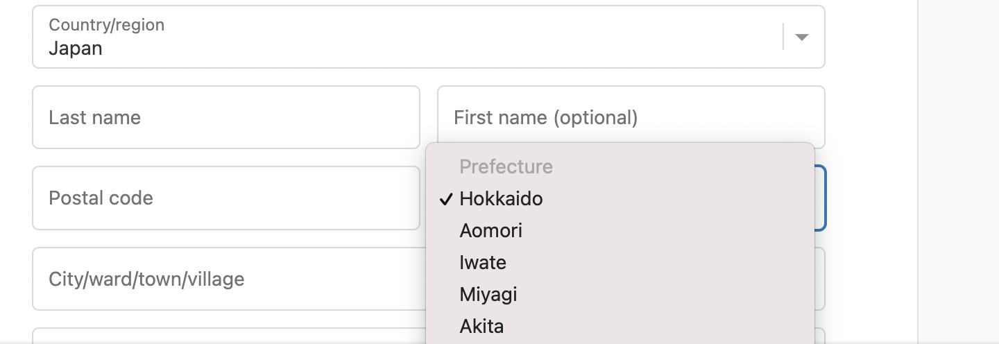 配送先住所を入力する際に、都道府県名が英語表記になってしまいみにくいので、日本語で表示させたいです。